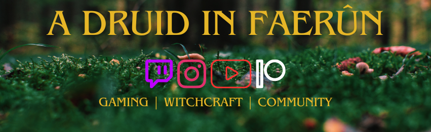 A Druid In Faerun's Grove is a new discord community. We have created a magickal community for those who are interested in Gaming, Streaming, Podcasts, Binging Shows and Books, Pets, Paganism and Witchcraft.