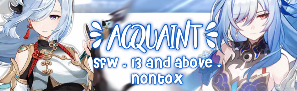 Created July 2021, Acquaint is a server for chatting & making friends! We offer many Genshin Impact, Honkai: Star Rail, and Zenless Zone Zero channels for all members. We host monthly/weekly events with fun prizes such as nitro, welkin, and other rewards! Acquaint is a comfy, laid back community for people who enjoy the games it is dedicated to. It also connects to hundreds of other servers via partnerships.