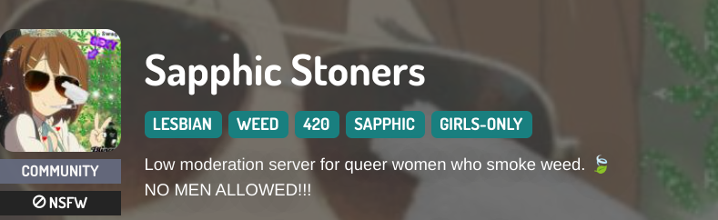 Low moderation server for queer women who smoke weed. π