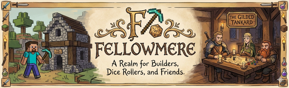 Welcome to Fellowmere, a brand-new community where Minecraft SMP meets D&D Tavern vibes! We are a fresh, growing realm built for adventurers who want to leave their mark. Whether you’re a Redstone wizard or a Nat 20 dreamer, your seat at the tavern is waiting.